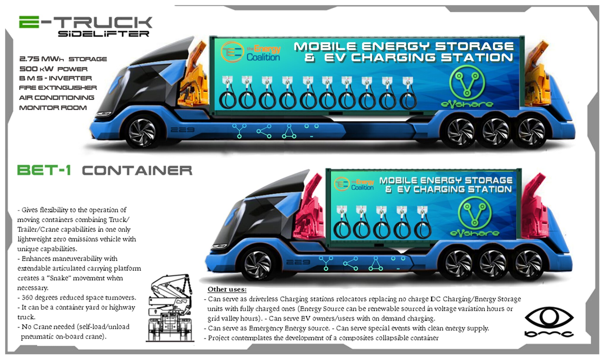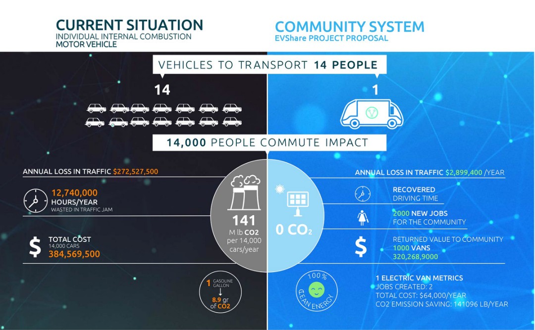 EVShare mobile charging stations charge from the local community energy grid and autonomously meet up with EVShare ride-sharing vehicles to “smart recharge” them.